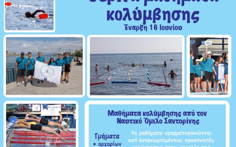 Για ακόμα ένα καλοκαίρι ο Ναυτικός Όμιλος Σαντορίνης καλεί μικρούς και μεγάλους στα μαθήματα κολύμβησης που διοργανώνει στην παραλία της Βλυχάδας μπροστά από τι...